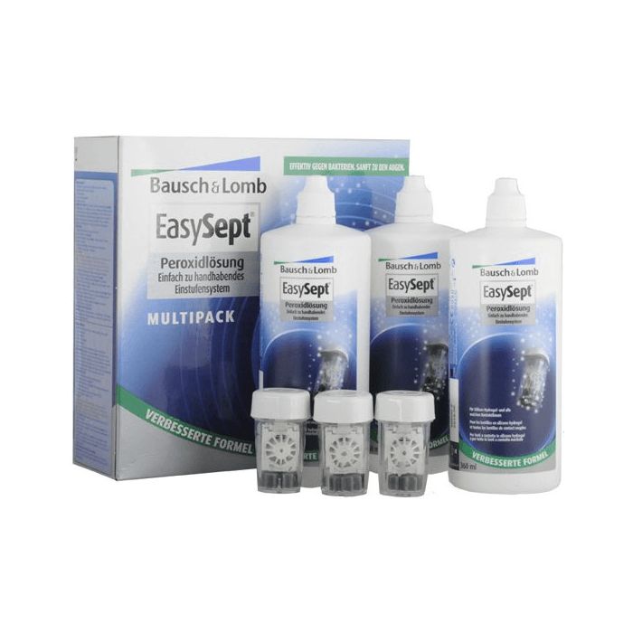 EasySept ist ein Einstufen-Peroxidsystem zur Desinfektion und Aufbewahrung aller weichen Kontaktlinsen. Die sterile, gepufferte easySept Lösung enthält 3% Wasserstoffperoxid und wird ohne Konservierungsstoffe hergestellt. Peroxidsystem ohne Konservierungsstoffe
